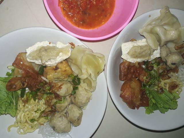 Bakso : blender daging sapi dan daging ayam bersama air es /es batu..masukkan bawang merah, bawang putih, baking powder, garam, merica, telur dan masako.setelah halus.yambahkan tepung kanji dan tepung terigu.